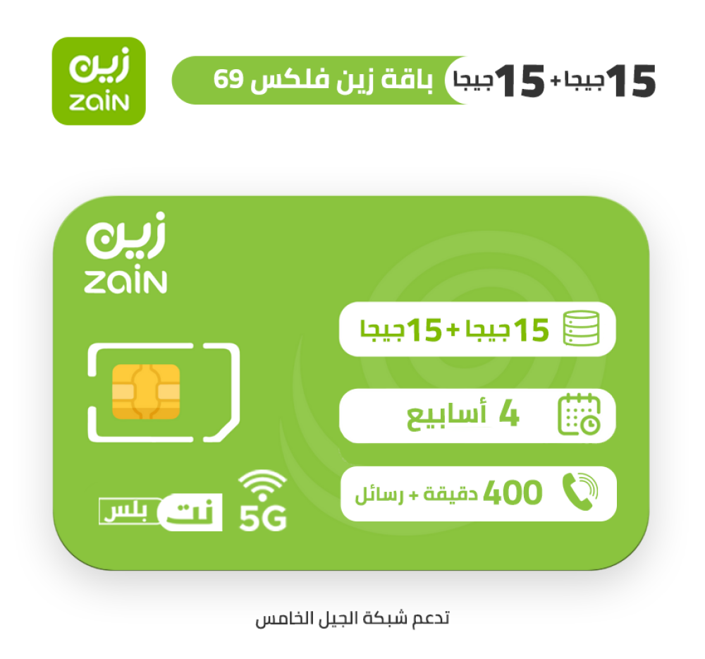 باقة FLEX 69من زين تمنحك 15 جيجا + 15 جيجا بيانات أساسية: